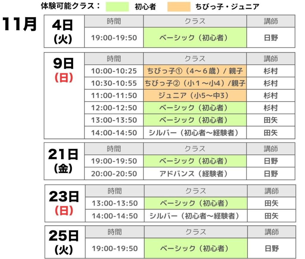 初心者向けクラス・ちびっ子・ジュニアでは随時、体験レッスンを受け付けています。